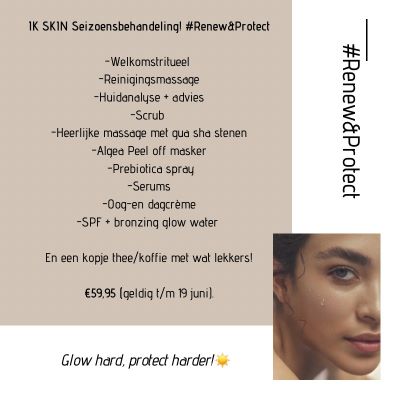 Tijdens deze verzorgende en ontspannende behandeling brengen we jouw huid weer in balans en beschermen we haar tegen invloeden van buitenaf. Vanaf nu te boeken t/m 19 juni.